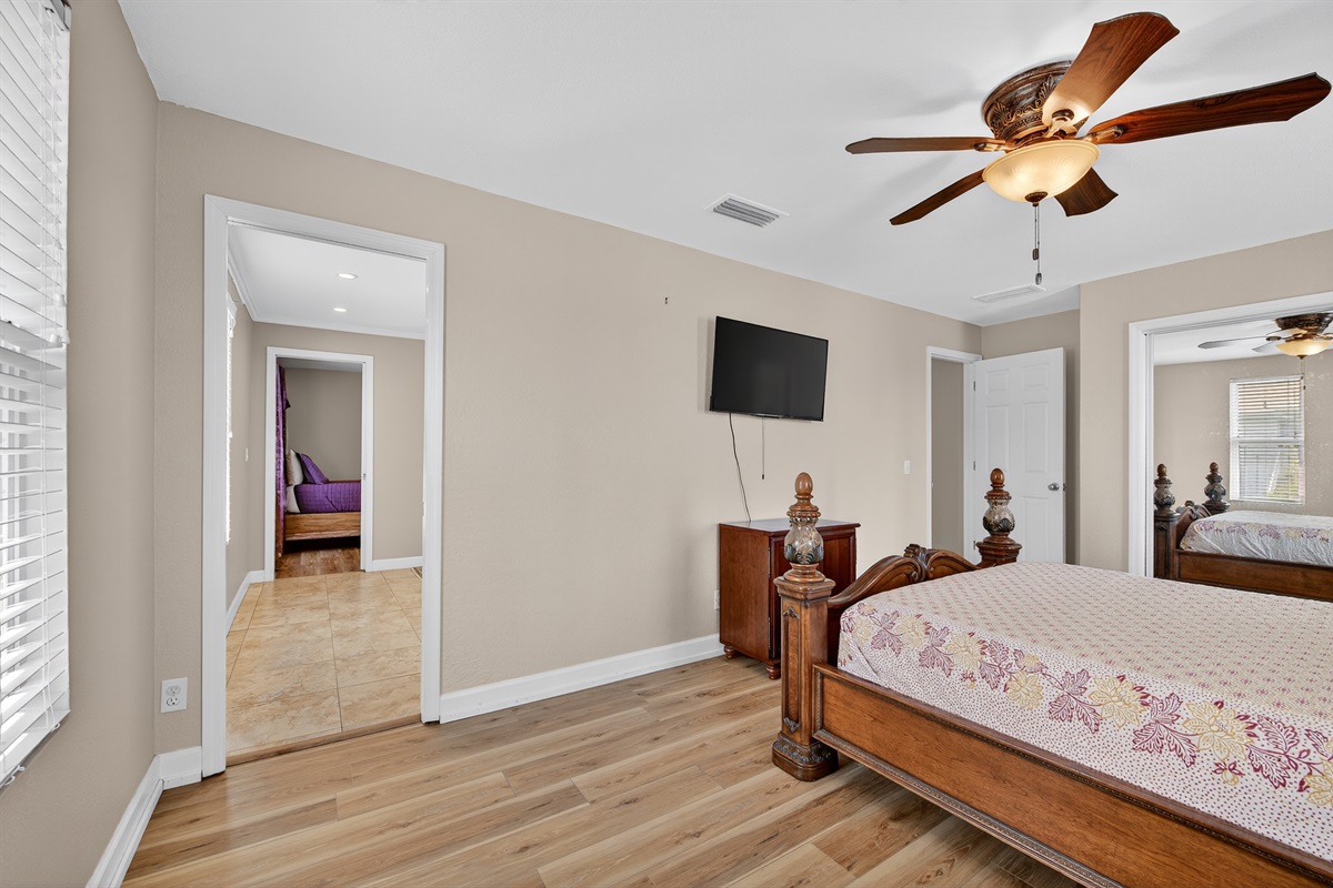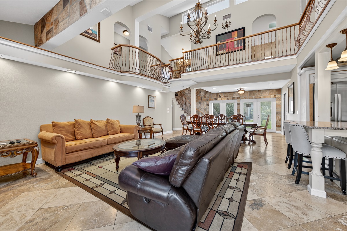 5 Bedroom, 5 bath home sprawls over 4,000 square feet. Downstairs has 2 bedrooms and 3 baths, and upstairs has 3 bedrooms, 2 baths, and 2 foldout sofas in the loft area.