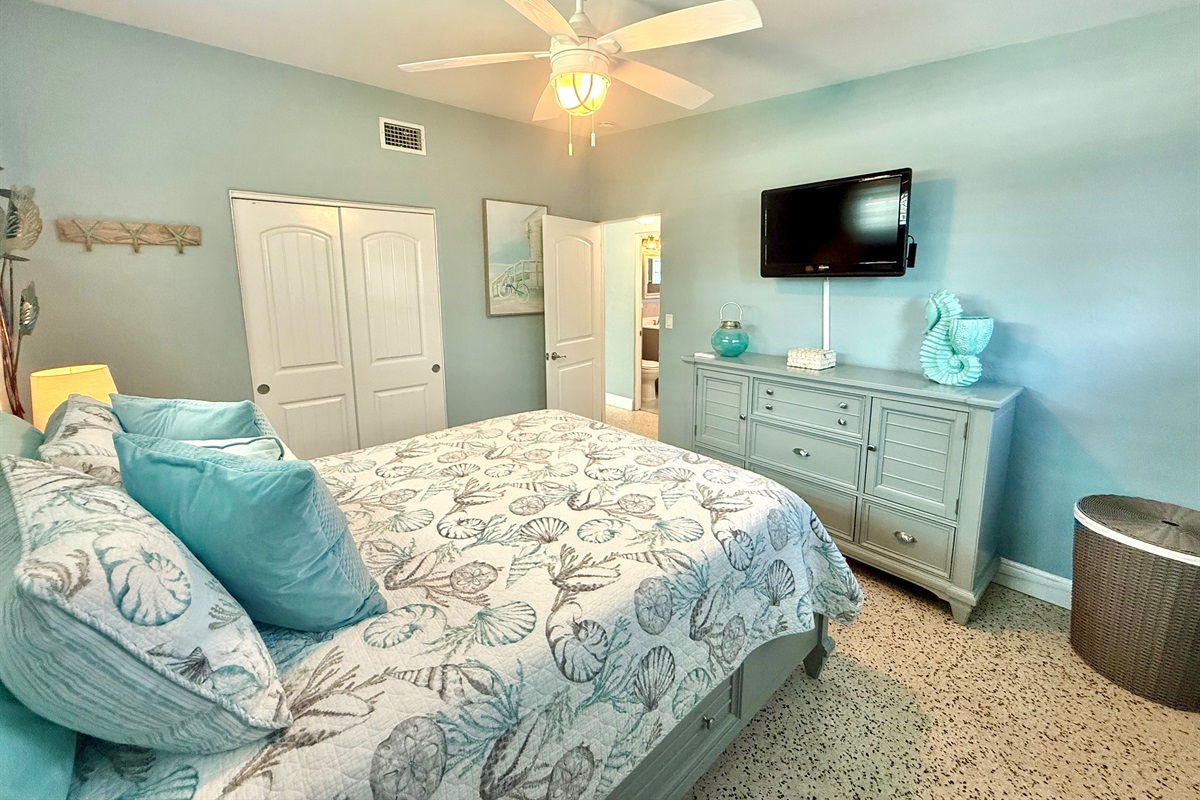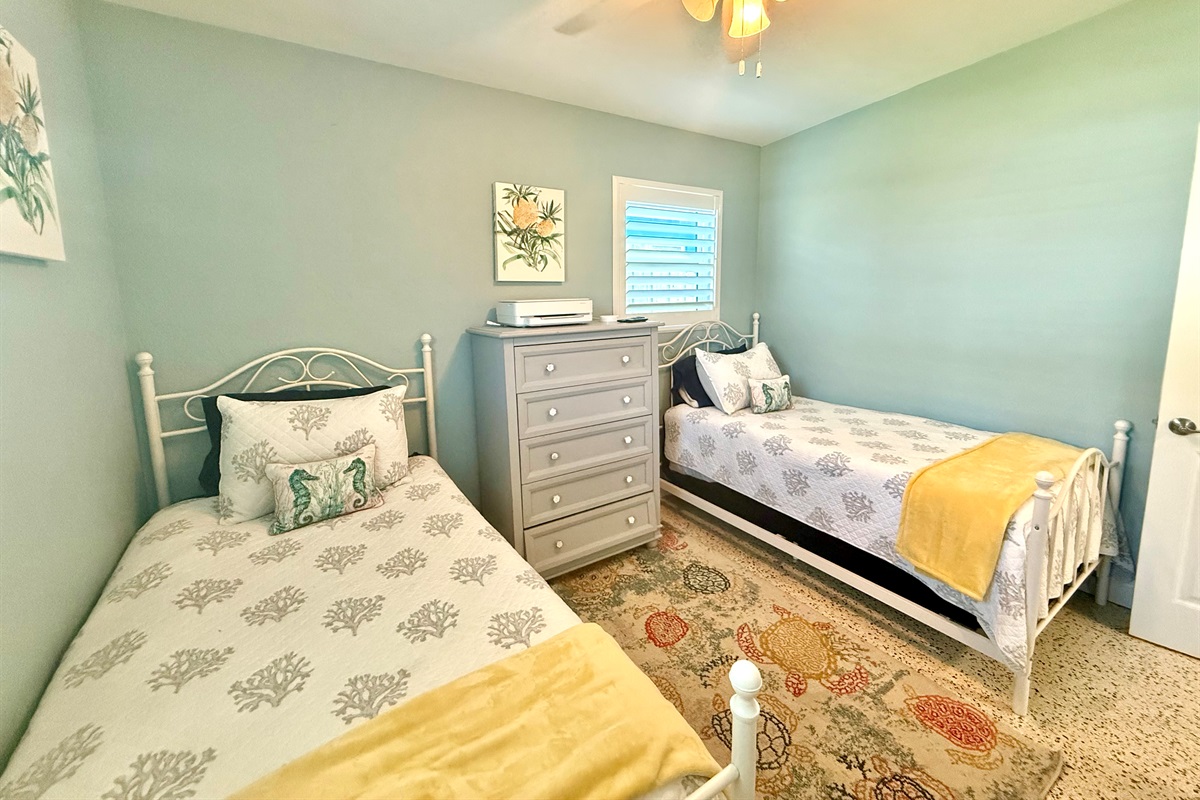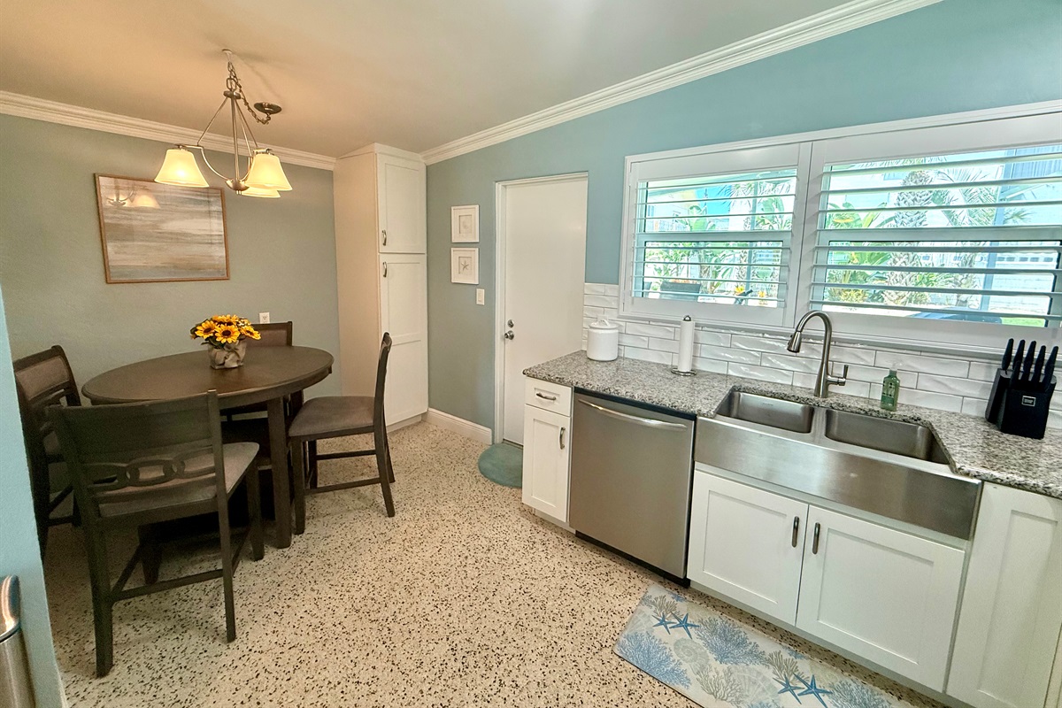 Inside Your Stay Sleeps 4 comfortably – Queen bed in one bedroom, two twin beds in the other Fully remodeled bathroom – modern stand-up shower Upgraded kitchen – stainless steel appliances, white cabinets, granite counters, dishwasher, and a cozy dinette table Bright & airy – windows bring in sunshine all day.